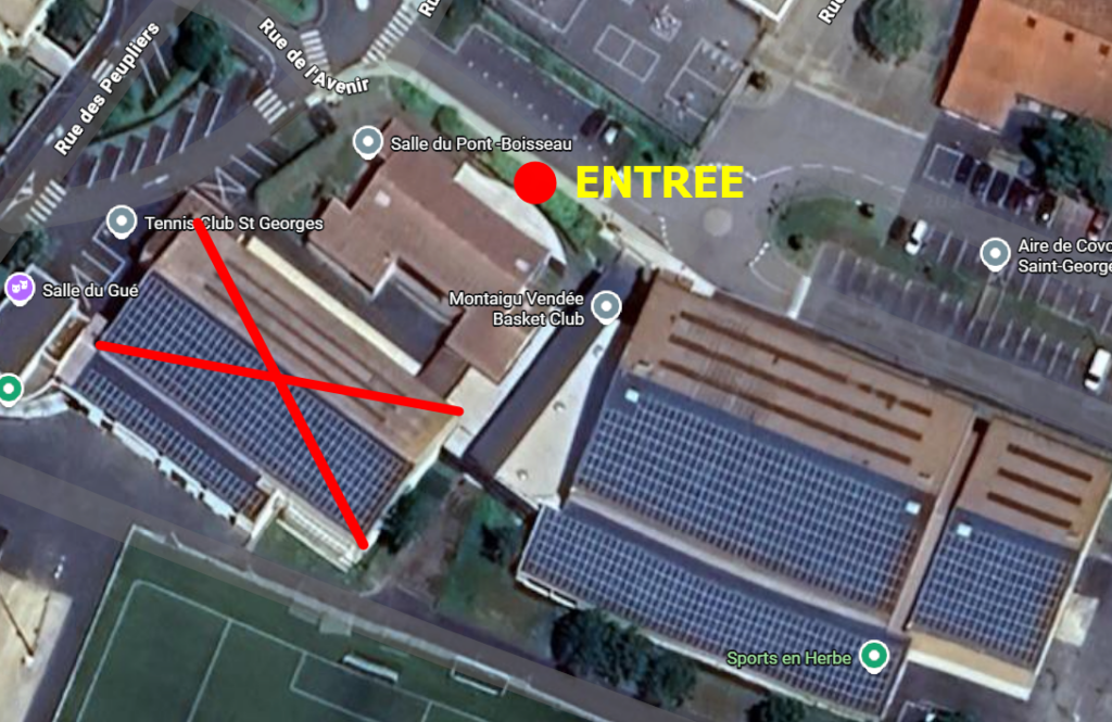 Attention : L’entrée dans les salles se fera exceptionnellement cette année par la salle du Pont Boisseau, la salle de sport de la Petite Maine étant en travaux :